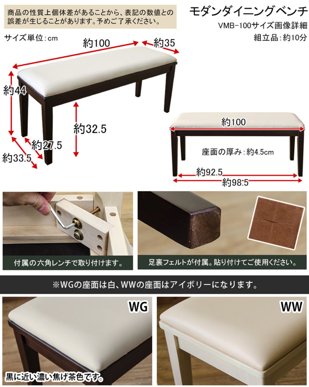 ウェンジ(黒に近い濃いブラウン)WGとホワイトウォッシュ(うっすら下地の見えるアイボリー)WWの2色展開です